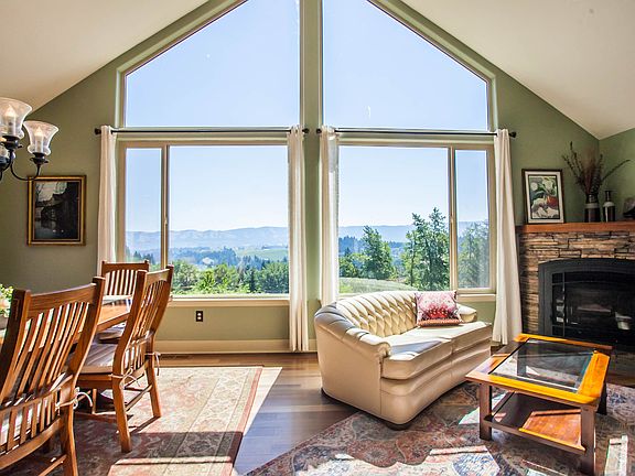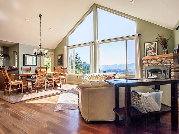 **UNFURNISHED** Custom 3 Bed, 3 Bath Home on 5 Private Acres with Stunning Valley Views Escape to peaceful living in this beautifully crafted 3-4 bedroom, 3-bath custom home nestled on 5 serene and private acres. With breathtaking territorial views of the valley, this property offers the perfect blend of comfort, tranquility, and connection to nature. The open Kitchen/Dining room features floor to ceiling windows and a beautiful vaulted ceiling making the room feel bright, open and airy with a stunning valley view. Relax in front of the gas fireplace that provides a cozy atmosphere on a snowy or rainy day. The main-level primary suite features expansive windows and private balcony that capture the morning light and stunning valley views an ideal retreat to begin and end your day. Primary suite bath has radiant heat flooring. The lower level opens directly to a patio overlooking the landscape, perfect for morning coffee, outdoor dining, or simply soaking in the quiet surroundings. Bathrooms and basement as well as garage all have radiant heat flooring. The well-appointed kitchen opens up onto a balcony with views of the valley as well. Bathrooms are updated with modern fixtures and appliances, blending contemporary convenience with timeless charm. A washer and dryer are included for your convenience. Whether you're looking to unwind in a peaceful setting, explore the outdoors, or enjoy the seasons in quiet comfort, this home provides a unique opportunity to live amidst nature's beauty. Please note: AWD or 4WD may be needed in winter months to access the property. Come experience the calm and comfort of this one-of-a-kind home your private escape awaits. High Speed internet is available through Hood River COOP PLEASE NOTE: CURRENT PHOTOS SHOW HOME FURNISHED BUT PROPERTY WILL BE RENTED UNFURNISHED 1 Year Lease Tenant Pays All Utilities: Electricity/Gas/Garbage Yard care is included Absolutely NO SMOKING Tenant is responsible for snow removal. Property has Well Water and a Septic System Irrigation water is available Property is Pet Friendly Number, Size and Breed Restrictions apply Refundable Pet Deposit: Cat is $1000 Dog is $500