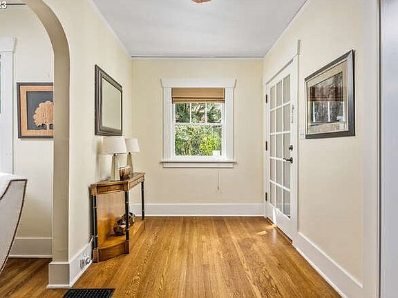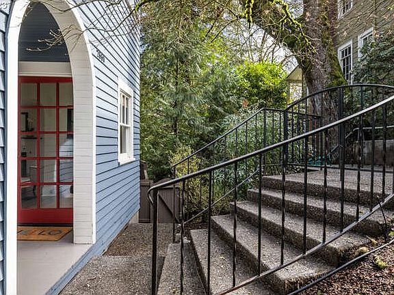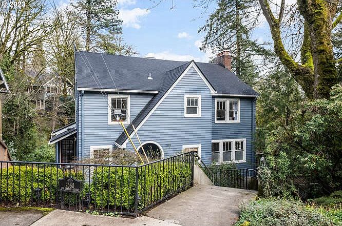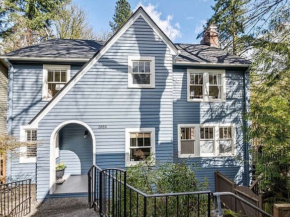 This sweet 1924 English Colonial offers Old-world details and lush, treed outlooks while located on a quiet European-like street. Multi-paned windows frame views of majestic trees including cedars, Douglas fir and old-growth redwoods. The second floor consists of three bedrooms, a full bath and a sunroom - which could serve as a dressing room or 2nd floor laundry as laundry hook-up is in the wall. The 3rd floor serves as a bonus/media/home office or guest retreat. The unfinished above grade basement is full of unlimited potential with multiple work benches and its own exterior entrance. The home includes an additional tax lot for a total of 10,235 SF of land. Taxes shown reflect BOTH tax lots. The included lot backs to SW Broadway Drive with a gate that opens for supplemental parking. Buyer to verify improvement possibilities with the City regarding additonal lot. The lot has been appreciated as outdoor space and additional parking and could be a perfect setting for summer celebrations or garden parties. Marquam Park trails are located 155' from the back yard - the sellers have enjoyed walking to OHSU and Council Crest Park from their back door! Meandering pathways are connected via decks, patios and a level lawn. A spring fed pond offers tranquility. A nearby public staircase gives convenient access to SW Broadway Drive. Close access to downtown and freeways, but a world away in a treed setting in Portland's SW Hills. [Home Energy Score = 1. HES Report at https://rpt.greenbuildingregistry.com/hes/OR10213749]