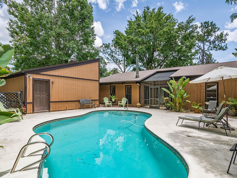 This Quaint Centrally located home Located on .91 Acres in a perfectly wooded setting with lush Bamboo and matured trees Giving a great deal of privacy and tranquility to enjoy the pool on any given day. Three large bedrooms would be perfectly suited for a family and with the upstairs loft for added room. Tile floors run throughout the home, Four year old appliances, 2 screened porches. Roof replaced in 2017, New water heater, new well and irrigation pump as well as fresh interior paint. This home is waiting for its new owner to enjoy all that it has to offer.