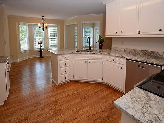 - Kitchen Features: Breakfast Bar, Eat-in Kitchen, View to Family Room, Stone Counters, Pantry Walk-In, Breakfast Room, Cabinets White