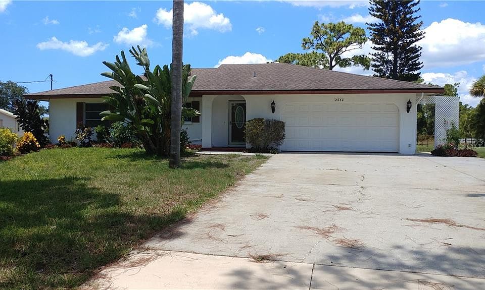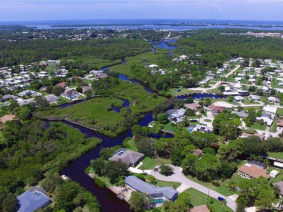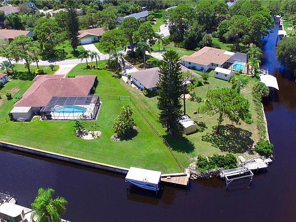 WATER FRONT PROPERTY WITH ACCESS TO THE GULF OF MEXICO!! $40,000 PRICE REDUCTION!! Large point lot where 2 canals come together offer approximately 150ft of open waterfront with multi level dock. Nestled on this quiet cul de sac you'll find this sun drenched property. Pride of ownership in this clean well kept home. Split floor plan with 2 large master suites with generous panoramic windows and walk in closets. The other guest bedroom has adjacent bath. Perfect for family, guests and multi generational living. Beautiful leaded glass entry door leads to large open light kitchen with new LED ceiling lights, recent appliances and remodeled cabinets. Updated light fixtures thruout. Ceramic tile in kitchen, entry, hall and bathrooms. Living room has 10 foot sliding glass doors to Florida room and your oasis backyard. 100 ft driveway for plenty of parking. Extra side pad for boat parking. 2 car garage w/electric opener. Dine in or relax in your sunny Florida room that has views of the saltwater canal that leads to the Gulf of Mexico on Oyster Creek. Plenty of room to add a pool in this oversized lot. 3 blocks to 250 acre county park with walking/biking trails, dog park, rec center, tennis, basketball, public pool, playground and more. 3 blocks to major super center. 5-10 minutes to Englewood Beach and several golf courses. Furnishings are optional if buyer wants it furnished. Mature landscaping includes shady pines, palms trees, fruit trees, and flowering shrubs. Bring your boat and come on home!!