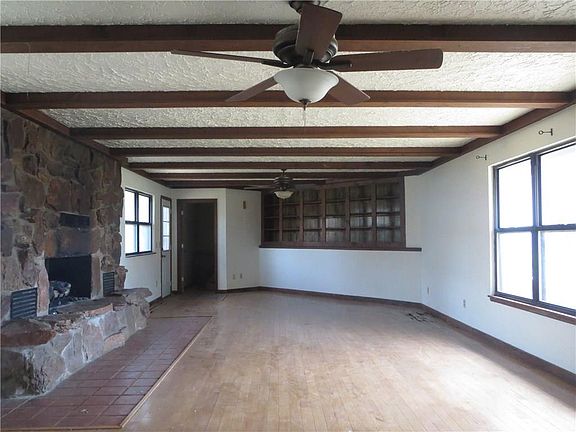 This unique home sits on nearly 5 acres and features a big living room with built-ins and a fireplace, huge kitchen with lots of cabinets, an attached garage, and laundry room. Outside features a barn plus a deck and balcony overlooking the scenic landscape.
