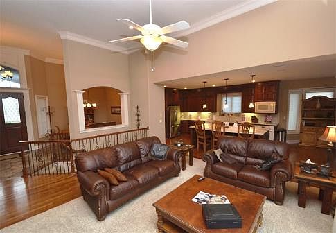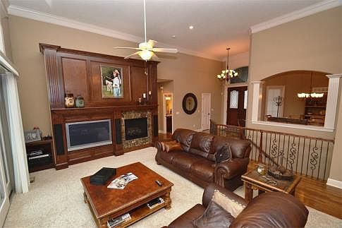 Quality, luxury & location! Fabulous ugprade loaded Reverse 1.5 story home situated on Shadow Glen's 6th Fairway! Custom double door entry, gorgeous Italian marble, & rich cabinetry & hardwoods! Soaring, open design featuring extensive trim work! Bonus 1st floor Office! High-end, spa-like Master Bath with multi-headed shower & relaxing whirlpool tub! Huge finished walkout Lower Level complete with a cozy fireplace, handy wet bar, & a shady covered patio! There is also a huge upper deck that is perfect for outdoor entertaining! Quiet cul-de-sac location, upgraded tile roof, & fine maintenance-free living in a highly desirable resort-style community! For more information, please call 913-661-2303.
