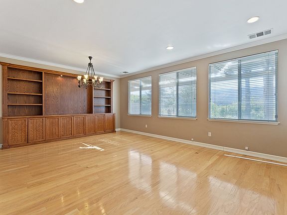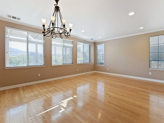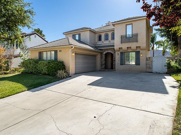 In the beautiful suburbs of Stevenson Ranch, with amazing views of the mountain ranges, sits a 2,792 sqft, 4-bedroom, 2.5-bathroom single family home move in ready for the next buyer to make their mark. A large driveway leads to the front door of the home and upon entering you are greeted with high ceilings. Pale blonde laminate flooring throughout the living room, that's flooded with tons of natural lighting, making the space the perfect venue for any sort of entertainment. A hallway, right at the edge of the stairs, that leads to a very big family room and has tile flooring throughout. The large open floor plan makes the flow to the kitchen super convenient and makes the whole room the perfect venue for hosting guests. Kitchen includes a large center island, for the convenience of countertop space, styled with white cabinetry, granite countertops and built in appliances. Stairs that ascend to the upper level hallway, connecting a common bathroom with 3 bedrooms, all of which have built in closets and carpet flooring. A primary double door bedroom, at other end of the hallway, which includes an en suite bathroom and a generously sized walk in closet. Access from the family room the backyard, complete with a covered patio and a full pool/spa, so one can enjoy during a hot summer So Cal day. Home includes an individual laundry room with a washer/dryer attached and direct access to a 2 car attached garage, big enough to be used as a nifty workshop.