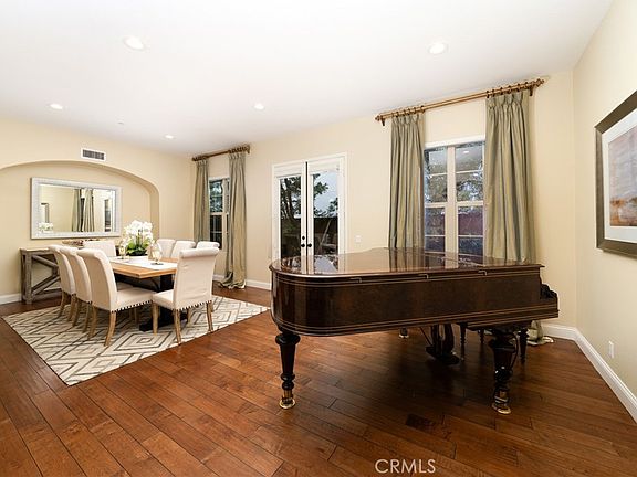 Welcome to the coveted gated community of Pacifica San Juan. This immaculate, turn-key estate is 4,114 square feet with 5 bedrooms and 4.5 baths. As you enter the home you are greeted with stunning hardwood flooring. Off to the right, don't miss the en-suite bedroom with its own full bath, perfect for any guest or family member. Continue through the formal dining and living room which are inviting and ideal for any special occasion. The gorgeous kitchen and family room have an open concept feel where family can gather and create special memories. The kitchen includes wood cabinetry, granite countertops, extra large island, stainless steel appliances, and a professional range and hood. The windows and doors are equipped with pulldown shades for extra functionality. Off the kitchen you will find an enclosed, private office area with a built-in desk and cabinetry which leads to the 2 Car Garage. The garage is spacious and has an ample amount of storage cabinets and Epoxy flooring. As he head upstairs, allow the staircase lighting to guide you up to the loft with a beautiful built-in, allowing an area to work from home, study, or a play area for the kids. The overlook at the top of the stairs also adds a nice touch. The oversized primary suite includes resort style amenities, including an oversized tub, walk-in-shower, and a generously sized walk-in closet with custom wood storage including, ample drawers, shelves, three pull-out tie/belt/bag racks & generous hanging space. The balcony off the primary suite is private and peaceful - the perfect place to enjoy your morning coffee or book. The upstairs also includes the laundry room and 3 additional bedrooms, 1 with a Jack & Jill bath and a second en-suite with its own bath. The backyard is beautifully landscaped and includes a lemon tree, avocado tree, built-in barbeque, fire pit, covered patio, pergola, areas for gardening, two side yards, and a fountain. This special home is located minutes from the beach, in the heart of South Orange County. The community provides many amenities including: a pool, spa, barbeque area, cabanas, clubhouse, a gym, and overlooks a stunning ocean view that will take your breath away upon entering and exiting the community. It’s in an amazing location, only a few minutes from Dana Point Harbor, San Clemente beaches, and the historic San Juan Capistrano.