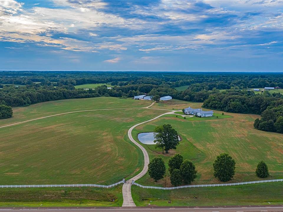 Sprawling estate complete with all the luxurious amenities that one would expect with a property of this caliber. Commercial grade kitchen w/ Viking professional appliances/quartz tops, open concept floorplan, media room, gated entry, & long winding drive that provides superior privacy, 3 large shops/hay sheds, & income producing row crop fields. Approx. 34 mins to I-269 via Hwy 64.*Pending survey* Available with less acreage at a reduced list price.
