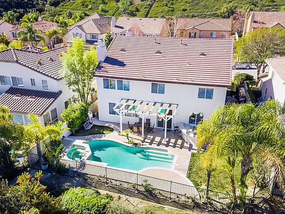 Stevenson Ranch pool home with beautiful views of the valley. Formal living room with vaulted ceilings and fireplace. Bright, spacious kitchen with granite counters and large center island. Oversized family room off kitchen with built-ins, crown molding and second fireplace. 4 large bedrooms plus tech area upstairs. Master bedroom also has a retreat perfect a gym or sitting area. 3 car garage. Entertainers backyard where you can enjoy the peaceful views, private pool, spa and built in BBQ. Great, quiet location! Just minutes to the freeway and access to award winning schools.