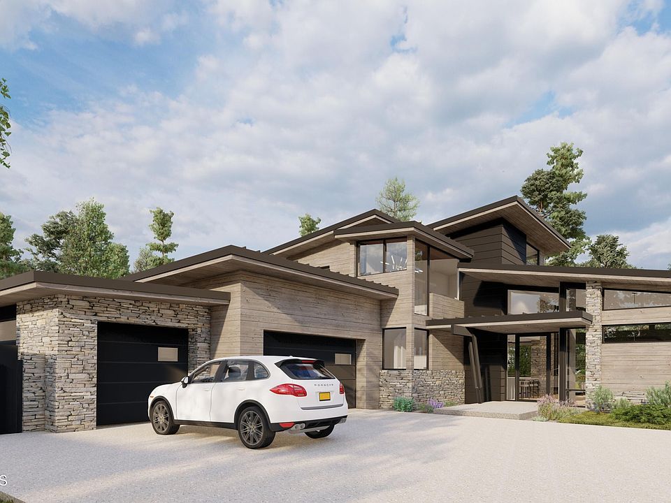 Estate 220 is a contemporary home located on E Lower Pasture Road along the 13th fairway at Gozzer Ranch Golf and Lake Club. Currently under construction with an estimated May 2023 completion date. This home offers 4 bedrooms, 4.5 baths, as well as a 2 bed/2 bath guest house with separate garage, and 4,919 square