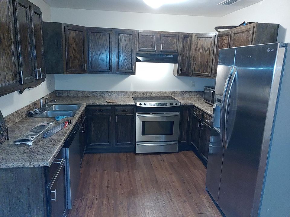 Brand new home , totally remodeled , new refrigerator , washer dryer included !! beautiful bathrooms , double parking in front . fenced backyard very close to Walmart , Lowes , sams . new heat , cooling , new metal roof , covered back deck !! energy efficient low on bills tenants responsible for power water , yard maintenance