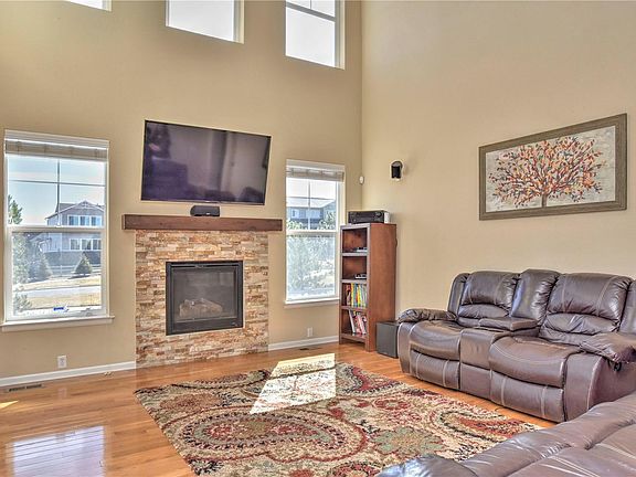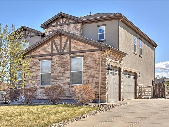 Gorgeous Dillon model in the desirable Anthem Highlands community. Stunning open floor plan incl. a family room w/gas fireplace w/tile surround & a mantle, formal dining room & kitchen with breakfast bar, Corian counters, dark maple cabinets, glass backsplash & walk-in pantry. The main level also includes a guest bedroom, 3/4 bath and laundry. On the upper level, you'll find a spacious loft plus 3 bedrooms including a master with tray ceiling, mountain views and private 5-pc master bath with Corian counters. The basement was recently finished and includes a spacious rec room with speakers, wet bar and office with french doors. Spacious backyard with stamped concrete patio, mature trees & trampoline. Anthem Highlands community features a state-of-the-art rec center, pool, miles of trails & multiple parks just minutes from the highly acclaimed Prospect Ridge Academy charter school. Near Hwy 7 for quick commutes to Boulder & Denver