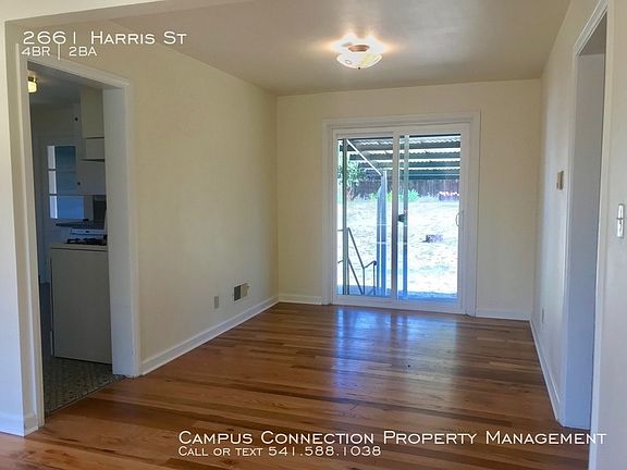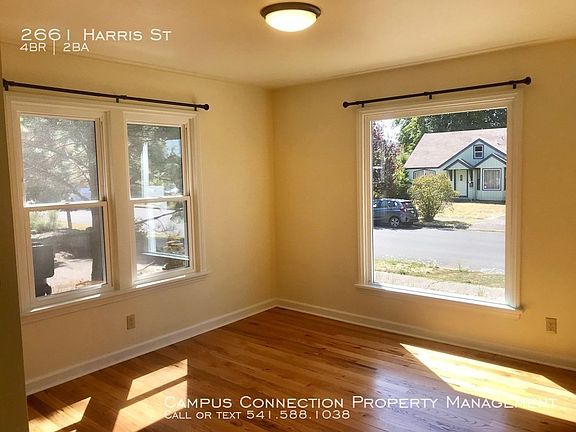 SCHEDULE A SHOWING ONLINE AT: showmojo.com/lh/80fd1c407e Available for immediate move-in, this huge 4 bedroom/3 full bathroom duplex is in a highly desirable South Eugene location at 26th and Harris. Close to bus line, both U of O and Lane Community College, short walk to Sundance and Albertsons grocery stores, Burrito Amigos, Sundial Cafe, Ume Grill, and Amazon Park bike trails, pool, and dog park. This spacious home features beautiful hardwood floors and hard surface flooring throughout (no carpet!), great natural light, gas stove and dishwasher in kitchen, large bedrooms, two full bathrooms, expansive basement with washer and dryer. Huge (unfenced) shared yard with clothesline, shed, and tons of gardening potential! Yard care is provided. Off-street parking in driveway and ample street parking is also available. Tenants pay all utilities and garbage. Water on shared meter - tenants will be billed monthly for 6/7th portion of water online through their Tenant Portal. Electric on separate meter to be put in tenant's name. $2,400 refundable security deposit. $50 application screening fee per adult. Some pets OK that meet CCPM Pet Policy requirements. Lease through June 23, 2020. Off Street Parking On Site Laundry Yard Care Provided