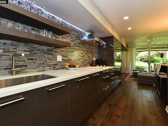 One of the most sophisticated serene and contemporary interior spaces you will ever find on Maui. This is simply one of the most gorgeous one bedroom one bath ground level apartments available in the Kaanapali resort. The remodel was just completed over a year ago and simply exudes style. With 960 sq ft of living area the floor plan has been completely reconfigured to maximize a very comfortable and private living experience. Currently used as a primary residence and could also be a an incredible vacation/ second home with access to all the resort amenities, three pools, private beach cabana, walking distance to Whalers Village for shopping & restaurants. Viking Stainless Steel Professional appliances, Sub-Zero refrigerator, and uline multi zone wine fridge. Oak hard wood flooring, quartz counter tops and travertine tiled shower, all top of the line materials sourced in the USA. All cabinets are custom handmade solid hardwood by Bellmont out of Washington State. Asko side by side washer dryer built into cabinetry. There is also a whole house dehumidifier system installed in the soffit above the kitchen sink so the apartment stays a a very neutral cool temperature, its on an automatically "smart home" controlled thermostat. Being sold with the main furnishings, artwork is excluded as well as a few smaller pieces of furniture. This is Maui Eldorado as you have never experienced it before! Truly a remarkable property and an opportunity to own one of the most fabulous apartments within the Kaanapali Resort.