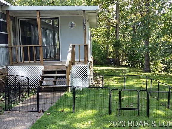 Looking for a weekend or full-time haven w/an atmosphere of peace and serenity? This attractive single-wide mobile w/added sunroom and is tucked away in a quiet lakeside neighborhood just a short walk from the 54000-acre Lake of the Ozarks. The large open-concept living room/kitchen features a breakfast bar, dining area, wall-to-wall easy-to-clean newer windows, built-in china cabinet, ample counter space and pantry. The home sits on two lots just up the road from Hiawatha Beach Resort that features a boat ramp and & dock space (subject to availability). Park your vehicle, boat or side-by-side UTV in the 20x20 cement-floor detached garage equipped with electric shop-vac and space to build a workshop. Yard is level, easy to mow, and there is a concrete walkway around back of the home. The stove, refrigerator and a brand new matching washer and dryer set (used only a few times) stay w/full-price offer, along w/propane tank (full of propane). Come take a look and make an offer!