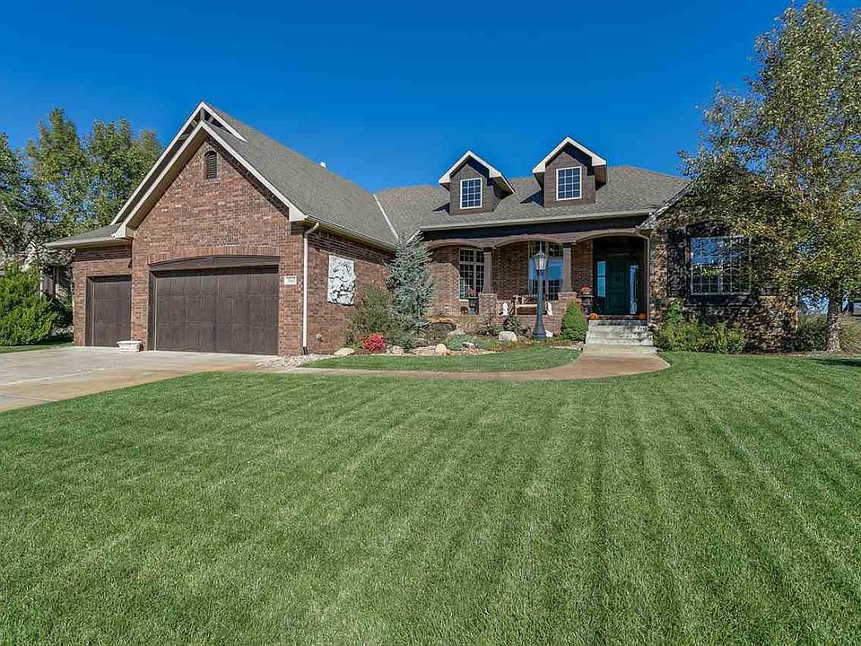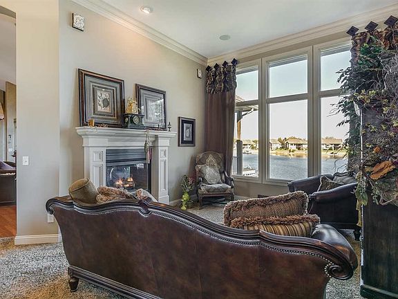 Vacation every day in this fabulous home located on a premium lake lot in Emerald Bay Estates. Outstanding curb appeal with a large covered front porch and waterfall. This home is perfect for entertaining! Amazing views throughout with both Formal Dining and Living Rm. Huge island Kitchen is sure to be a gathering area for guests with dining space, hearth rm with two-way fireplace, walk-in pantry, vaulted ceiling and granite countertops. Split bedroom floor plan offers a large master suite and expansive tile bath with walk-in tile shower, separate tub, double vanities and extensive walk-in closet that passes through to the laundry. 2 additional bedrooms, hall bath and½ bath complete the main floor. Finished basement is also sure to be an entertaining hotspot! Huge Family/Rec Rm with wet bar and built-in TV entertainment center and fireplace. The basement also features Bedroom #4, full bath, future office currently used for storage and a work shop that could be 5th bedroom that exits to the backyard. Enjoy the lake from the large covered deck with built-in TV storage or covered patio that leads to the wonderful teared patio/beach area. Extra deep lot in the no wake area for low beach maintenance. Other extras include custom wood work throughout, oversized 3 car garage with built in storage, surround sound on the main area and much more! Lake is soon expanding to 100+ acres with skiing, jet skiing and great fishing... Luxurious waterfront living at its best!
