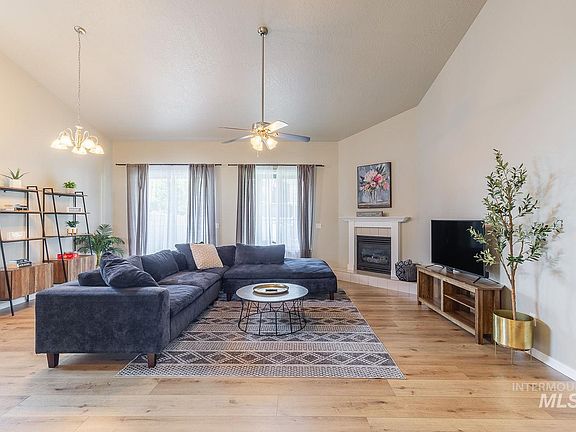 This beautifully renovated single-level Meridian home offers a spacious area that lives above its footprint. The open layout is perfect for modern living and the 4th bed could be used as a home office. The large living room features vaulted ceilings, a gas fireplace, and plenty of natural light from oversized windows, creating an inviting atmosphere for entertaining. The kitchen boasts granite countertops, white cabinetry, and newer stainless-steel appliances. The master suite includes vaulted ceilings, dual vanities, a soaking tub, its own private patio. Step outside to a fully fenced backyard with a covered patio, ideal for outdoor relaxation. The oversized garage will hold your cars & toys! Updates include a new roof, LVP flooring and a 50-gal water heater, all installed within the last year! Conveniently located near parks, schools, shopping, and even golfing! This home combines style, comfort, and a fantastic location. Sellers may be willing to sell furnished as well! Easy to see—schedule a tour today!