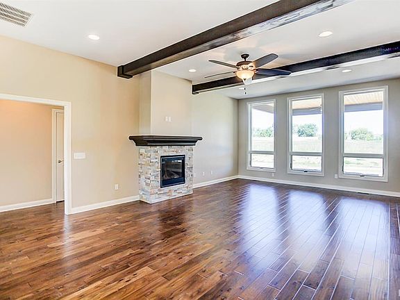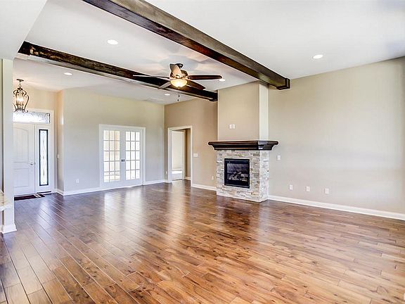 - Breakfast Bar, Ceiling-9+, Tray Ceiling(s), Ceiling Fan(s), Beamed Ceilings, Countertops-Solid Surf, Entrance Foyer, Kitchen Island, Open Floorplan, Split Br Floor Plan, Double Vanity, Stand Up Shower, Main Level Bedroom Suite, Custom Cabinetry