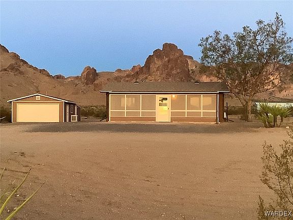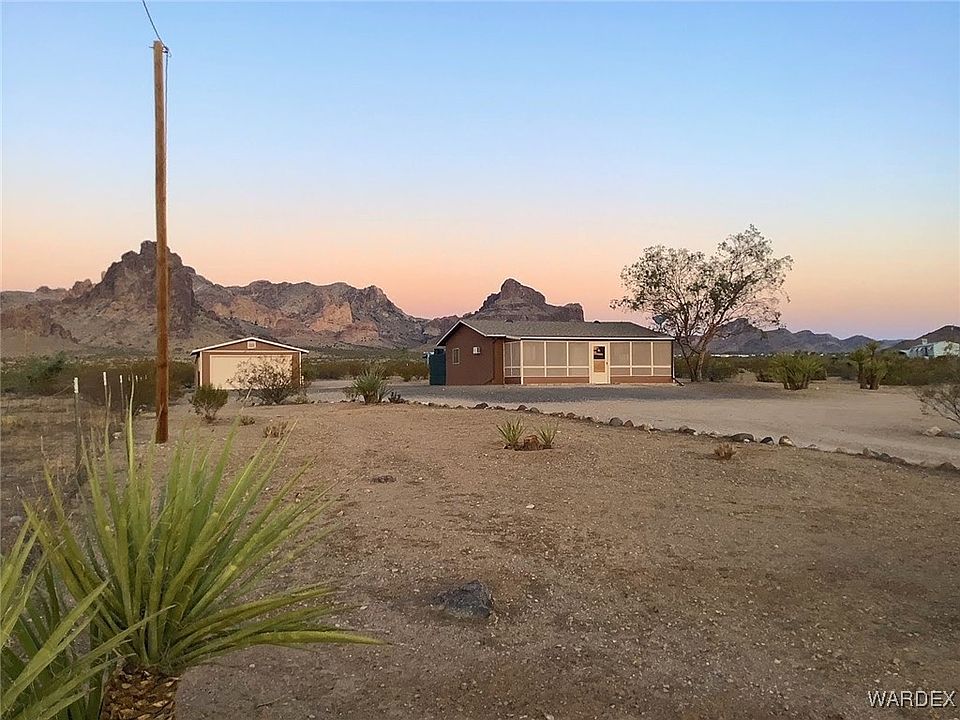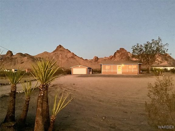 This cute home sits on 2.35 acres with an amazing view of the Black Mountains. Only 1 parcel from BLM where there are tons of trails to hike and ride your off-road vehicles. Home has an enclosed patio to sit and have your morning coffee while you watch the breathtaking sunrise. Oversized 2 car garage with additional storage off the back that would make a great tack room for those with horses or a place to put all your yard tools. Bring your horses and all your toys and enjoy the absolutely beautiful sunrises and sunsets from this property! Only 25 minutes from Laughlin and the Colorado River. And did I mention the awe-inspiring views! Home sold AS IS!