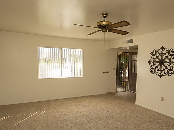 2 bedroom, 2 bath home located in Sun City's 55+ senior community. This home has an enclosed patio, dedicated laundry room and a one car garage with automatic door opener. Corner? lot and only 2 neighbors. Small pet may be considered (additional fee may apply depending on breed and size). For more information call 760.822.1020 Tenant responsible for utilites. Minimum 1 year lease