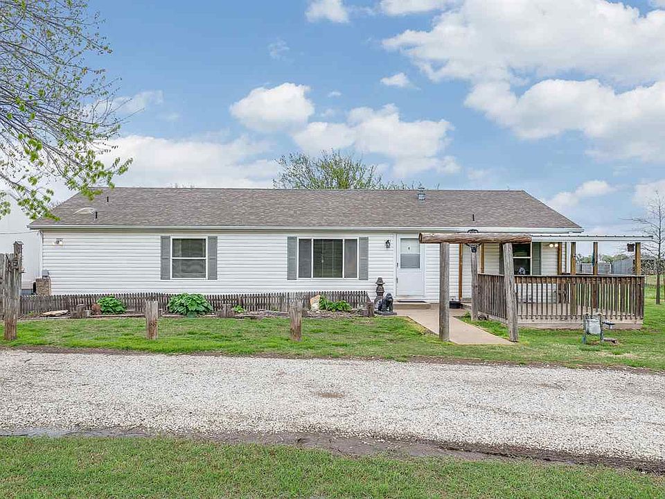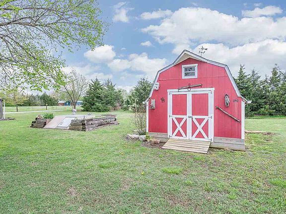 Nice three bedroom, two bath, ranch style home on almost 5 acres a short drive from Wichita! The property sits just off K 42 - allowing easy access to Wichita and surrounding communities. A mature tree line protects the home and its surroundings from wind and weather. A fully stocked pond is accented by a wonderful old windmill. Detached 30'X36' garage can park up to three cars and has concrete floor and electric. Two additional storage sheds are also on the property along with a large storm shelter. The back yard is fully fenced with mature landscaping. The home has a nice open living/dining area with office. Separate office space has french doors and a built in desk. Kitchen has a breakfast area in addition to the formal dining room. All appliances remain with the home.
