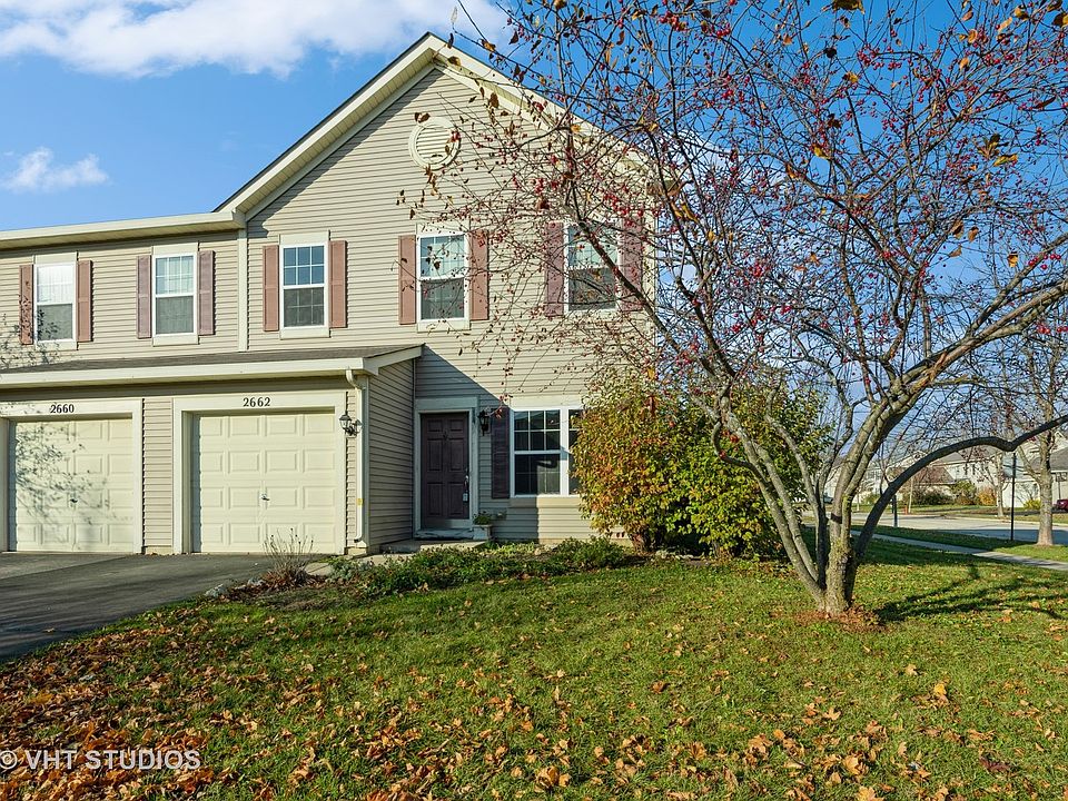 Welcome Home to Lakewood Crossing! This 3 bed, 2.5 bath duplex home sits on a large, fenced in corner lot and is in the Huntley school district. Hardwood floors throughout the living room, family room and eat in kitchen lead to sliding glass doors to the patio and spacious yard, great for entertaining! Second floor living includes a large primary bedroom with ensuite bath and large walk in closet, 2 more bedrooms, in unit laundry, and second full bath. Community residents enjoy the clubhouse, pool, recreation court, and playgrounds. Convenient to shopping and just minutes from I-90 and Rt 47!