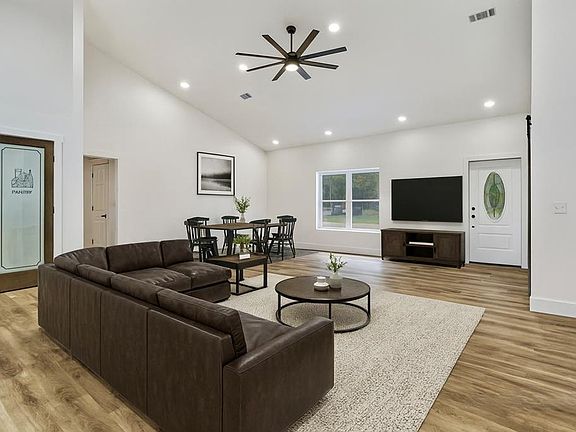 Sleek, modern, and built for easy living—this 2025 barndominium-style ranch delivers 1,957 sq ft on a 1-acre homesite with an attached garage. Step into a massive 20' x 39' open great room that blends living, dining, and kitchen into one impressive gathering space—perfect for everyday life or entertaining a crowd. The kitchen centers around a large granite island with seating, while the primary suite features a tile walk-in shower. Clean architectural lines, low-maintenance materials, high-end finishes throughout, and a functional single-level layout make this home as practical as it is stylish. (Buyer to verify all information before making an informed offer.)