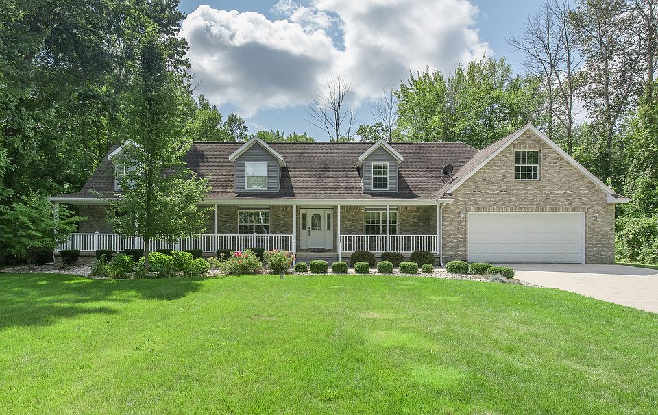 What a View! Clean & Spacious 2950 square foot 2+ Acre home built 2002 located Larkin Township only 5 minutes from City. 4/5 bed 2.5 bath, 2.5 car Cape Cod with charming covered front porch, City Water, Main floor Master - vast walk in closet and master bath. Large kitchen surrounded by food pantries and main floor laundry with closets throughout the home.