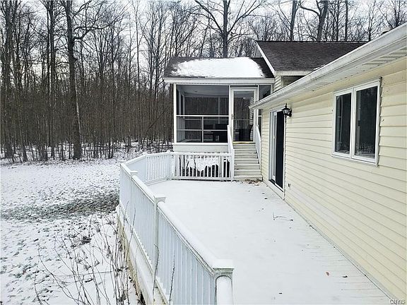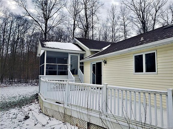 Looking for quiet living with your little slice of peaceful living...then look no further. This well maintained home is nestled amongst 11+ wooded acres and only minutes to the Village of Moravia. A wonderful home with a modern kitchen and open layout of the main living area, that leads to the finished basement with its cozy gas fireplace to enjoy during long cold winter days or evenings. A special feature is the large screened-in porch right off the master suite...there is wiring in place to add a hot tub. All this home and a garage with propane heat making it great for a little workshop. If this is not enough, then check out the large deck and yard with plenty of woods where the deer and turkey roam(2 tree stands stay). Only 20-30 minutes to Auburn, Cortland, or Ithaca for work, play or shop.