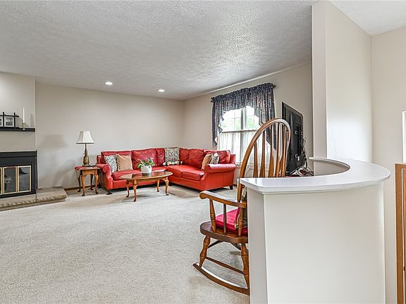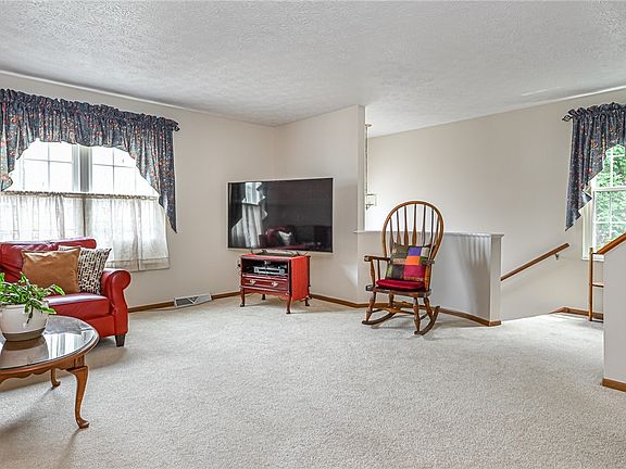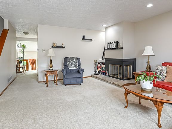 Spacious end unit in desirable Hunters Point neighborhood! Freshly painted entry and living room with a wood burning fireplace leads into the open, light & bright kitchen and dining room that has a vaulted ceiling and skylights. Easy access to private deck from sliding glass door off dining room or take a few steps down to the cozy den where you have a brand new sliding glass door leading out to a patio. First floor also includes powder room and a front & back staircase to the finished lower level family room. Laundry room also on lower level & includes washer and dryer. Upstairs you'll find a generously sized Owners bedroom with a walk in closet, a spacious 2nd bedroom with ample closet space, and a newly renovated full bathroom connecting the two! The oversized 1.5 car garage holds one car comfortably and a ton of storage space. The unit also has all new windows! The community has sidewalks, clubhouse, pool & playground. Quick access to I79, I279 and PA Turnpike.
