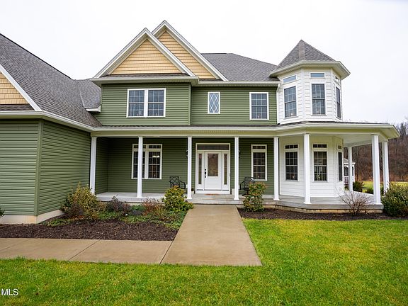 Stunning custom built home, on 2.69, acre in Scotch Valley.  This 2018 home was built with every detail in mind.  See the Beautiful  Hickory Hardwood flooring throughout the home. Plus, custom blinds, custom kitchen Cabinets, Granite Countertops, Wine Refrigerator, floor to ceiling Stone Fireplace and 2 Bosch high efficiency heat pumps  to keep you warm in the winter and cool in the Summer.   The 1st floor features an open floor plan,  with a formal dining room, first floor bedroom, 3/4 bath, laundry room and  private study  with  French Doors ( the glassed Turret Room.)  The 2nd floor offers 2 large bedrooms with full bath , recreation room and impressive master Suite ( With a Huge walk-in closet and 6 ft jetted tub. There are 2 oversized heated garages and one detached garage, connected with a long, wide driveway. There is a wrap around covered porch that extends from the front of the house to the back of the house. Along with a new screened-in Gazebo that was added for your enjoyment both day and night.  New Roof installed in 2023. Plus, new extensive landscaping; trees, shrubs etc. Ask for your private showing today!