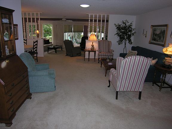 Beautiful, clean 2/2/2 plus acrylic enclosed lanai on oversized lot. Double entry doors lead to tiled foyer and open plan home. Living room has solar tube. Family room has sliders to spacious lanai with custom shades. Kitchen has bay windowed eat-in area, updated with Corian counters, newer raised panel cabinets, newer appliances including '16 stove. Master has 2 sinks, 2 closets and big tiled shower. A/C and dimensional roof both new in '06. Beautiful landscaping with flowering bushes in back yard. One owner has lived in and loved this well-maintained home. Some furniture may be available separately for sale.