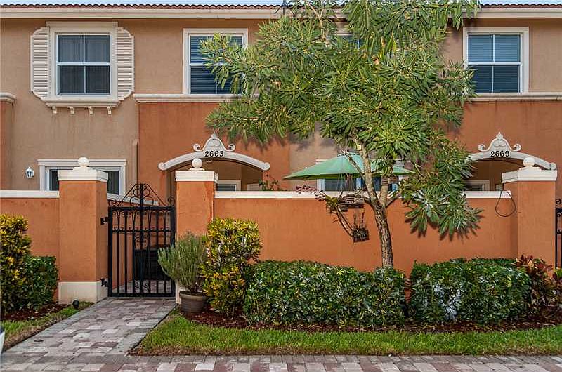 Beautiful 2/2.5 with many upgrades. Great condition. Granite countertops, wood kitchen cabs, SS Appliances. Tile 1st flr,laminate wood on stairs & both bedrms. Full size washer/dryer inside the unit. Pavered patio entrace. Gated community w/beautiful community pool.