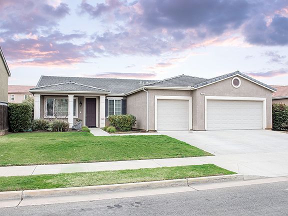Pride of ownership shows in this large single level Clovis home. Desirable amenities include an open concept floor plan with a kitchen large enough to entertain out of. This opens to a huge living room with fireplace, separate from the family and dining rooms. Low maintenance custom stained concrete floors throughout the high traffic areas with newer carpeted bedrooms. Large master suite complete with soaking tub and a sizable closet. A finely manicured back yard, Clovis schools, walking distance to a city park, only minutes to Sierra Vista or Old Town Clovis, and curb appeal are all bonuses! You won't be disappointed.