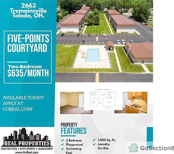 This 1000 square foot townhome home has 2 bedrooms and 1.0 bathrooms. This home is located at 2663 Tremainsville Rd, Toledo, OH 43613.