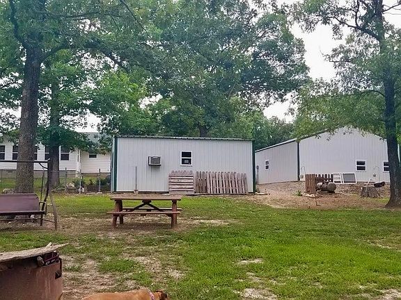 This beautiful place has everything you could want. Semi open floor plan needs nothing. There is 3 bedrooms and 2 full bathrooms and a large sunroom. Split floorplan layout with master having a large master closet and bathroom. HVAC is only 3 years old, 1 year old carpet in the living room and flooring in the kitchen. For the guys, there is newer 30x40 shop that is fully insulated with spray foam and has a wood stove and a man cave in there with a fridge, there is also a storm shelter in the shop floor under the metal lid The other out buildings are: a 3 sided shed that works well as a 3 car garage, as well as a great 16x25 building with electric, heat and air that is right now being used for dogs. The back yard is fully fenced to keep your fur babies at home. The back patio is stained concrete and a great place for enjoying the evening or a barbecue with your friends with plenty of room for entertaining. All decking is maintenance free Trex. Well designed easy to care for landscaping. Large beautiful mature trees provide shade. All this on 4.8 unrestricted acres