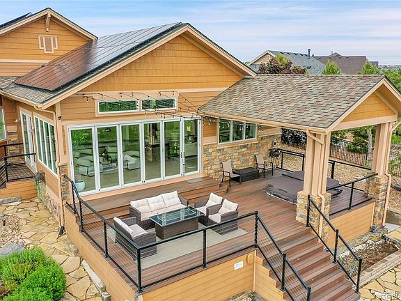 Arguably the best lot in Beacon Point – A Rare Gem Backing Directly to the AURORA RESERVOIR! Step into a home that blends breathtaking natural beauty w/ refined luxury. This exceptional ranch-style home offers PANORAMIC VIEWS that are simply unmatched in Colorado—right in your backyard! With a spacious, open-concept floor plan, vaulted ceilings, & a cozy fireplace in the expansive living room, this home feels as grand as the views it frames. The accordion sliding door effortlessly blends the indoors w/ the outdoors, revealing the tranquil waters of the reservoir just beyond. Perfect for entertaining, the outdoor living space includes a Trex deck w/ covered hot tub, a patio, & a built-in gas firepit for year-round enjoyment. Inside, the recently UPDATED KITCHEN is a chef's dream, featuring sleek new cabinets, quartz countertops, marble backsplash, double dishwashers, double ovens, a gas stove, & a smart refrigerator. The PRIMARY SUITE is a true retreat, w/ vaulted ceilings & sweeping reservoir views that are sure to inspire relaxation. The en suite bathroom is equally impressive, with custom tilework, a freestanding tub, an expanded shower, a double vanity, & a spacious walk-in closet. The main level is complete w/ private office, a 1/2 bath, two additional bedrooms, & a beautifully updated full bathroom. The FINISHED BASEMENT is an entertainer’s dream, w/ a full bar, a comfortable living & dining area, three additional bedrooms, a full bathroom, & a workshop for hobbies or storage. Enjoy SOLAR PANELS greatly reducing energy costs! Step outside, where outdoor ADVENTURE AWAITS. Enjoy biking, walking & wildlife viewing on the eight-mile trail that winds around the reservoir. With fishing, kayaking, paddle boarding, boating, & swimming all just steps away, this home is a gateway to an active, outdoor lifestyle. Discover Aurora’s best-kept secret—beautiful sunrises, sunsets, mountain VIEWS, & the serenity of the reservoir, all right in your backyard.