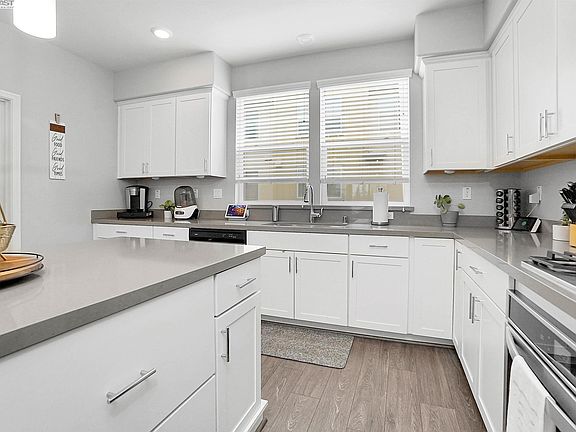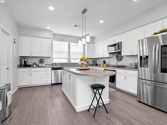 Newer contemporary three level townhome style condo, built in 2020 includes solar located in the “Heart of the Bay” in suburban Hayward. This beautiful condo home boasts of a 3 bedrooms, 2.5 baths with a large office/den on the lower level. A perfect space for those that work from home. On the main level you will find an updated kitchen with newer stainless-steel appliances, quartz countertops, a large island with modern overhead lighting, plenty of cabinetry and a walk-in pantry. Off the family room you can enjoy a balcony that is perfect for relaxing and enjoying scenic sunsets. Some of the home features vinyl flooring, updated bathrooms, recessed lighting, smart ECO thermostat technology and the list goes on. Upstairs you will be met with beautiful plush carpeting and 3 spacious bedrooms. The primary suite is complimented by a tray ceiling. Features include a walk-in closet and an on suite bathroom. Two additional bedrooms are down the hall away from the primary bedroom allowing for privacy. In a prime commuter location close to grocery stores, shopping, and various downtown Hayward restaurants, bars and eateries. In addition, a couple doors down there is an upcoming plaza that will house multiple stores including Sprouts. It will go fast!