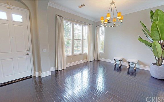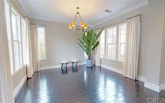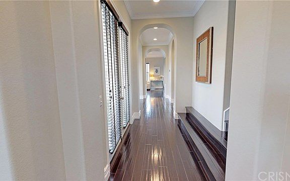 Designer sharp executive home on cul-de-sac location and unobstructed views! Beautiful wood flooring flows thru downstairs and upstairs as well, Crown Molding, Dual Staircases. Formal living room and formal dining room. French doors open to charming courtyard area. Bright open kitchen with granite counter tops, white cabinetry with glass doors, double ovens, custom pulls on cabinets, new kitchen fixtures, kitchen opens to family room with cozy fireplace. Center island and lots of cabinetry for plenty of storage plus an eat in area. Kitchen opens to family room with attractive wood floors, built in media niche and upgraded classic fireplace. Designer chandeliers and kitchen pendents. Downstairs bedroom and bath. Large master suite with coffered ceilings and a balcony so you can relax and enjoy the views!! Master bath with large step in shower, separate soaking tub and walk in closet with custom organizers. Nice size secondary bedrooms! Upstairs laundry room. Manicured yard and lawns with plenty of space to enjoy the outdoors! Outdoor BBQ area. Shows super sharp and neat as a pin. True pride of ownership!! 3 Car garage. Move in ready. Low Hoa. Close to award winning schools, parks, easy freeway access! Hoa tennis, park, etc.
