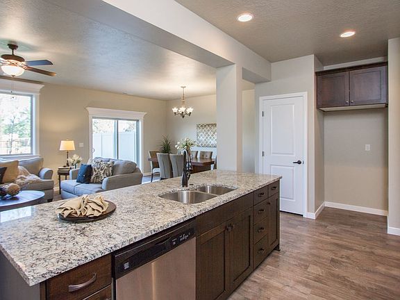 Mesa | Tahoe Homes. The galley kitchen is back & better than ever in this stylish rendition, complete with an oversized slab granite island & bookended w/ square columns. Custom Alder cabinetry w/ Walnut stain. Four bedrooms share the upstairs, along w/ a lg laundry room. The main bath offers a slab granite dual vanity. The master suite is large w/ slab granite dual vanity, large WIC. Private backyard w/ concrete patio is perfect for casual entertaining, etc.