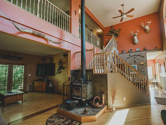 Beautiful setting of miles of Mississippi River Views. The home offers a grand entry with south facing windows to embrace the river views from both floors and the southern exposure. It comes with 4 total bedrooms, 3 baths, and 2 living spaces, 2 car attached garage with additional shop space and an extra shop. You will definitely feel the privacy as you travel up the blacktop driveway and see the extra parking space and rock outcropping inviting you home. Ample outdoor space to embrace the tranquility.