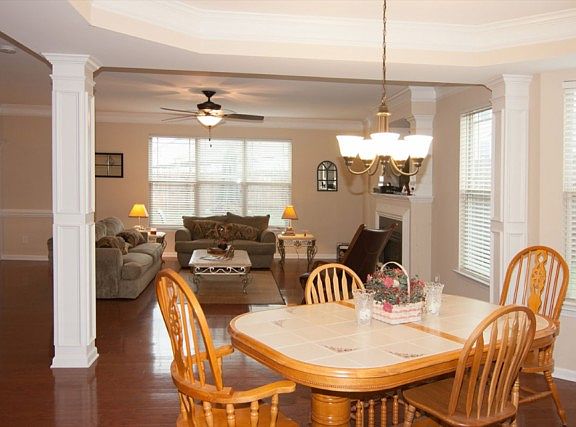 UNDER CONTRACT. Dramatic open floor plan. Hardwoods and raised ceilings in primary living areas. Tray ceiling over dining area as well as a bay window. Kitchen with hardwoods, granite counters, maple cabinets, gas range, island and black appliances. Breakfast area adjacent to kitchen. Large den with lots of window light plus a gas log fireplace. Sunroom with tray like ceiling & tile floor. Large master with spectacular walk-in closet & tray ceiling. Master bath with jetted tub, sep shower & tile flr. Loft could be bonus or family rm. 3 car garage. SO MUCH MORE!