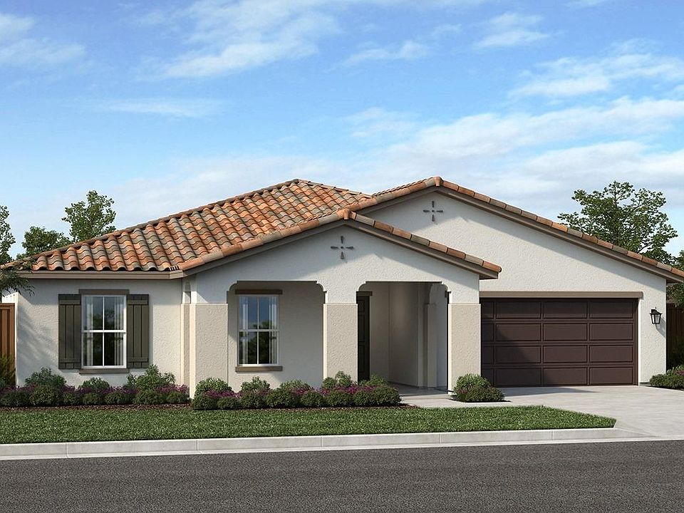 The stunning, single-story home, situated on a corner homesite, showcases a large, covered front porch. Inside, discover an open floor plan with a formal dining room and spacious great room and breakfast nook that overlook the backyard. A den with double-door entry makes for a private home office. Two secondary bedrooms offer a walk-in closet. The gourmet kitchen features an island, quartz countertops and Whirlpool® stainless steel appliances, including a 30-in. gas cooktop, vented microwave and wall oven. The primary suite boasts an oversized walk-in closet and spa-like connecting bath that showcases cultured marble countertops, a dual-sink vanity, tub and separate shower with cultured marble surround. Finishing touches include a tankless water heater and low-E windows for energy efficiency and comfort.