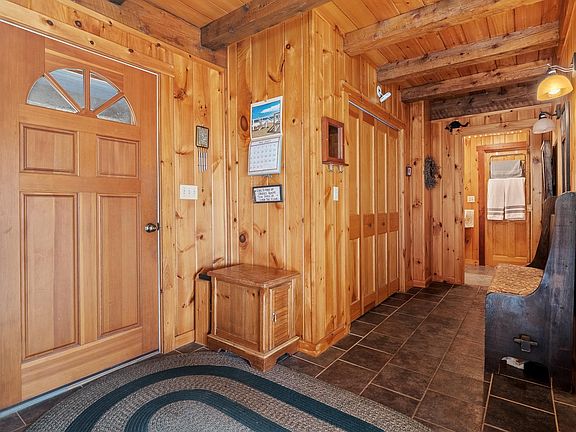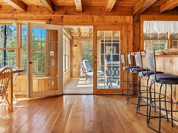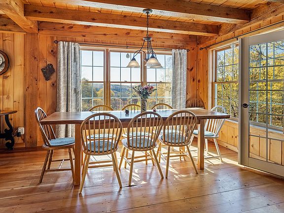 Beautifully crafted Gambrel post and beam house on 27.9 acres with long range views overlooking the village of Barnard. Located in the very desirable Mt. Hunger area of Barnard close to Silver Lake and the Barnard General Store. Bright and airy open format is enhanced by a generous array of windows and a vaulted living area ceiling. A three season room with a wood stove off the dining area provides additional living and entertaining space. Three bedrooms, three bathrooms and a large, bright walkout basement and fiber optic high speed internet access make this an excellent choice as a primary or second home property. A 32' x 50' building with a 16' high ceiling would make a great indoor basketball or pickleball court or whatever you can imagine. The building is not visible form the main residence: has 200 amp power service, radiant heat and water making it deal for the storage of cars, boats, equipment, RVs, etc. The potential exists to rent the storage space if not needed by the new owner. A recently added swimming/skating pond and a year round stream provide additional outside enjoyment to the property.