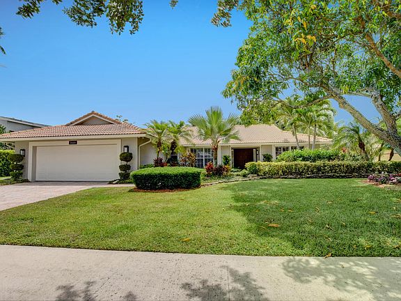 This home is paradise, beginning with one of the most delicious large mango trees planted in front of your home. As you enter the double front doors, there is a direct view to the pool and 6 acre park which sits behind the home. 4 bedrooms plus a large office, two huge living spaces and an expansive dining room looking out to the garden make this home ideal for entertaining. The master suite and en-suite guest room make up one side of the home, while the additional two bedrooms are on the other side. The office is situated privately away from the bedrooms. The details in this home are not to be missed from the up lit ceiling in the master seating area to the custom fireplace in the family room. A rare move in ready find in one of the most desirable neighborhoods in Boca.