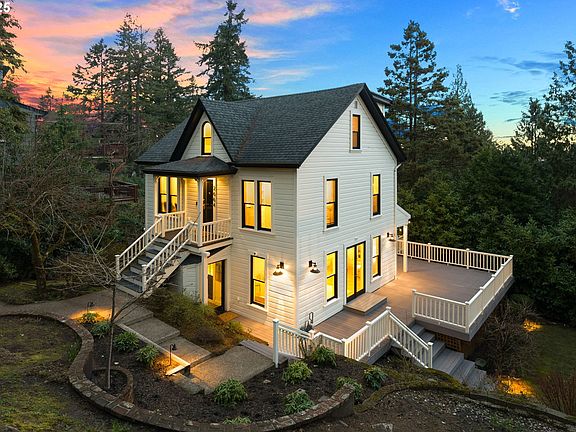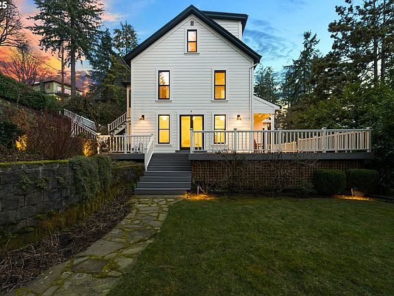 Here’s a beautifully updated farmhouse that offers a perfect mix of historic charm and modern convenience in one of Portland’s most desirable neighborhoods. Right on SW Talbot in Portland Heights, it combines classic details - wide molding, wainscoting, and a clawfoot tub - with thoughtful upgrades like a Blue Star stove and central AC. The main level is light and bright with a standout kitchen and a living room with French doors opening onto the spectacular deck and yard. Upstairs, two spacious primary bedrooms showcase hardwood floors, high ceilings, and plenty of windows. The top floor is a retreat of its own, with a cozy den, reading nook, and a bedroom, all framed by stunning views of Mount Hood and Saint Helens. Step outside to enjoy the wrap-around deck and beautifully landscaped backyard, designed for year-round color. A firepit area offers another space to unwind. Despite its peaceful setting the home is just minutes from the city. With top-rated schools and an unbeatable location, this home is a rare find.