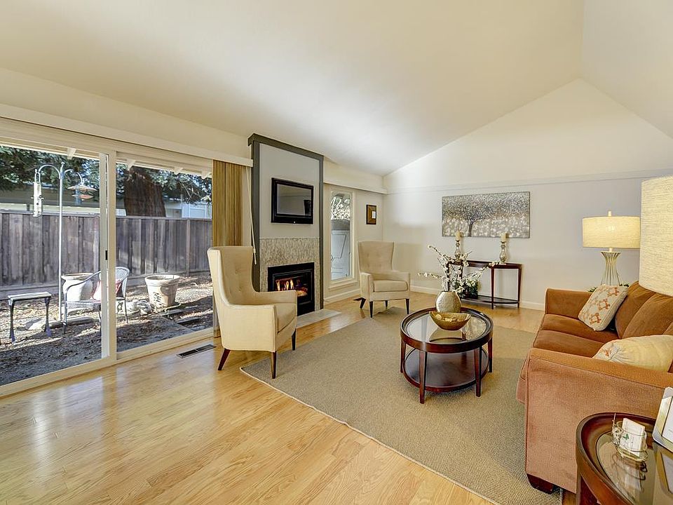Single story townhome. Upgraded and remodeled kitchen with built in combo microwave / connection oven unit, hot water dispenser, abundance of custom designed hardwood cabinet storage, water filter system. Updated baths, hardwood floors, dual pane windows, patio and privacy in yard. 2 spaces in carport, large storage shed steps away. Very close to shopping and freeway access. New interior paint & new gas enclosed fireplace. Easy to show. Open house Sun 1/27/19 1-4PM
