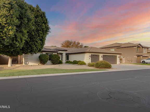 Upgraded home in a beautiful, gated community in Chandler. This home features 5 bedrooms/3.5 bathrooms nestled on an oversized lot with 3 car garage and rv gate. As you enter through the grand entrance you are met with bright and open space with new floors, vaulted ceilings with gorgeous beams and stunning stone accented fireplace. The gourmet kitchen boasts white cabinets, granite counters, large island, and double ovens. The new floors and beams extend into the master bedroom making it a true master retreat. In addition to luxury, the home is also energy efficient with tinted windows and spray foam insulation. Insulation was also added in the garage making for huge savings on energy bills. Furthermore, turf was installed front and back resulting in more savings and green grass all year! Right around the corner from Thude Park, the 101, and tons of shopping right off Chandler Blvd, this location is to die for!
