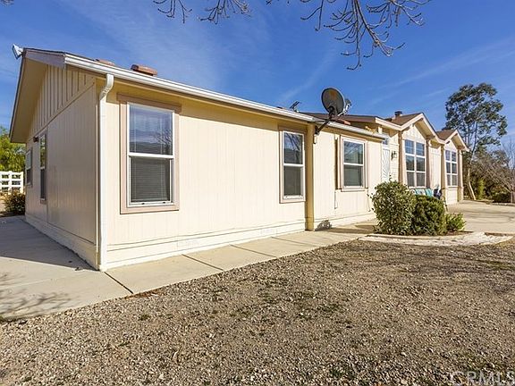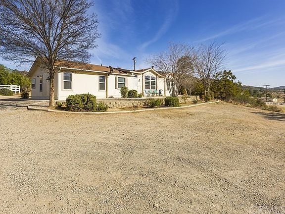 Private 3-acre parcel (25 minutes from Temecula. 3 BR/2 BA w/1763 s.f. manufactured in 2007. Small grid-tied solar system helps lower electric bills. Additional 1300 s.f. covered patio has potential to be fully enclosed to create a nearly 3000 s.f. home. Fenced-in riding area for horses along with a small Mare Motel. Property is also equipped with a covered area for RV parking & servicing. Two shared 5000 gallon water tanks w/275 foot well. Property along with adjacent property is fully fenced-in (6 fencing) w/a shared remote controlled gated entry.