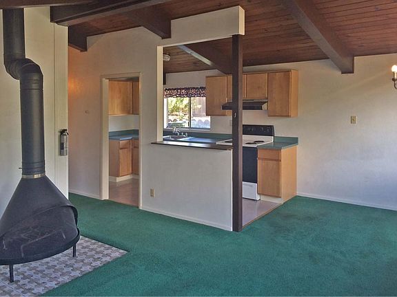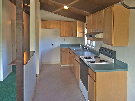 Mission Fields home on large level corner lot. Very sunny, lots of fruit trees. Single story, manufactured home with carport and room to expand. High vaulted ceilings.