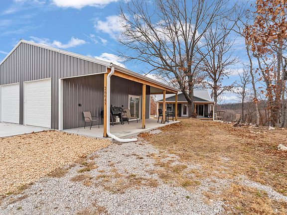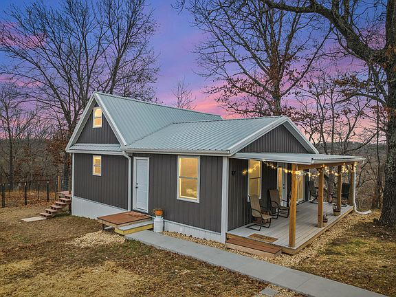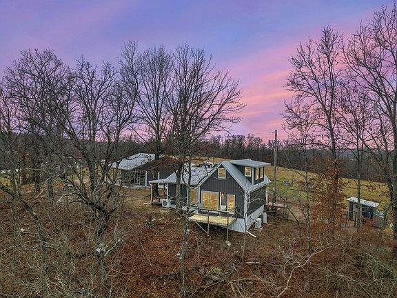 Nestled atop the Ozark Hills you will find this custom cabin with new addition added in 2022, on 23 acres overlooking Beaver Creek year around with stunning views and your own private access to fishing and canoeing/kayaking on your very own property and hidden from view. From the moment you turn on the road you see acres of pasture land and once parked and you walk the path to the covered composite front deck you fall in love with the serenity and privacy and know you have found your oasis to hunt, homestead, fish and live the life of your dreams. Inside find an open concept living room, kitchen, dining with smart core plank flooring, large island with storage, black stainless steel appliances, Pella windows & patio doors. On the main level also find the primary bedroom and bath, additional bedroom (Currently used as a pantry for canning) and laundry room. Upstairs find more panoramic views of the creek, woods and pasture where deer and turkey are plentiful with an additional bedroom and bathroom are refuge for full time living or those special guests. A 24x30 garage/workshop with electric and covered lean-to are just outside for all your storage or hobby needs. Speaking of homesteading, the yard features apple, pear and plum trees, raised garden beds, blackberry & raspberry, blueberry, asparagus, strawberry and horseradish already planted for your picking! Please see the detailed list of items included, which also include 3 storage buildings, an extra-long carport, underground storm shelter and MORE! With ownership rights to over 700 feet of Beaver Creek, this beauty won't last, call today for your Private Showing.