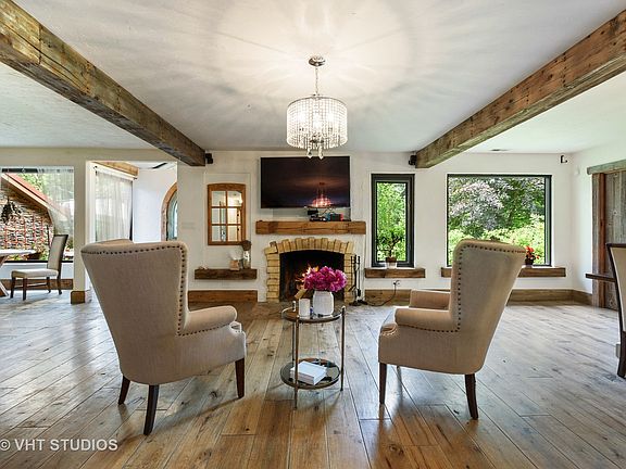 Rustic elegance with European country flare. Completely rehabbed in 2016. New windows! New Gable metal roof ! New kitchen! New baths! New Electrical! New plumbing! New HVAC! Heated floors! The home mimics a century-old farm house. Stunning rustic style ranch set on 2.2 private acres features WIDE PLANK hardwood floors throughout! This 4 bedroom, 3 bath home has a 1st floor office, 2 wood burning fireplaces and a super desirable open floor plan. Reclaimed wood repurposed as custom kitchen cabinets are naturally flawed barn wood. 48" Viking range, Sub Zero refrigerator and farm style sink with pull down faucet help to make this kitchen casually elegant. The great room AKA "Barn Room '' features more wide plank floors, vaulted ceiling, bookcases and fireplace. The private master features a slider to a private side deck ready for your hot tub. The spa-like master bath with double sinks, over-sized shower, soaking tub, and walk-in custom closet is a dream come true. The bonus room above the over-sized 3 car garage, is a great hobby/play/game/recreation room and more than makes up for the partial basement. Enjoy fishing in your private pond, bonfires in your fire pit, picking veggies in your garden and fresh eggs from your CHICKENS!! YES!! Chickens and chicken coop are included. LOW TAXES!! Close to town, shopping, restaurants, award winning schools and Metra. THIS HOME IS A MUST SEE!!